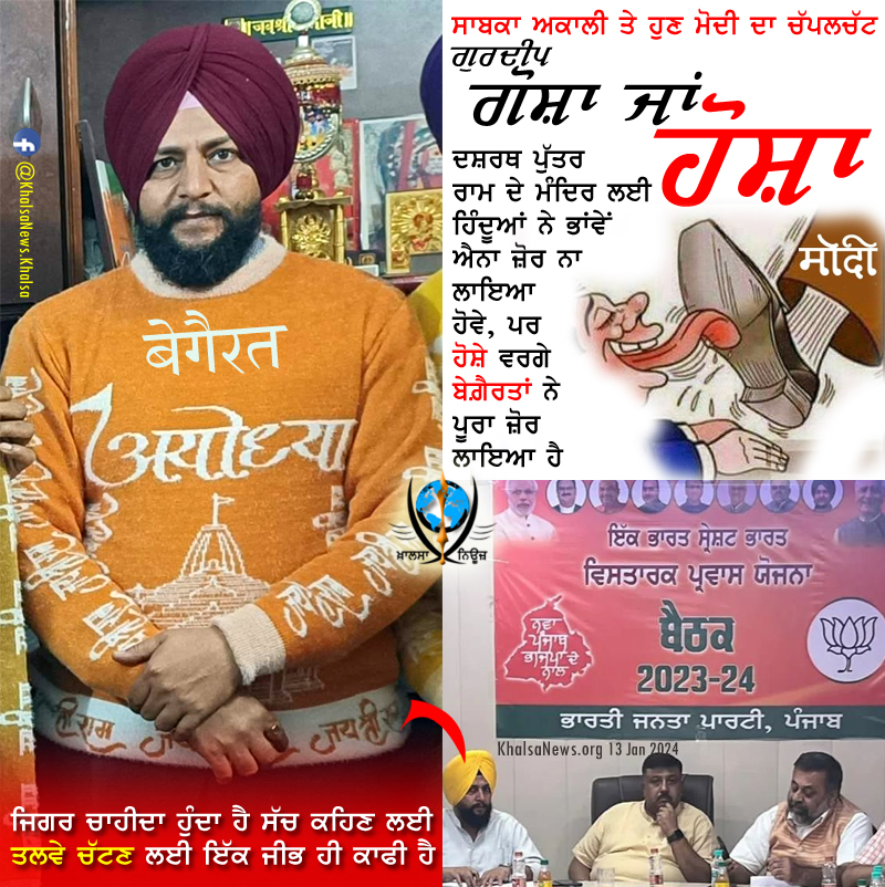 ਅਕਾਲੀ ਤੇ ਹੁਣ ਮੋਦੀ ਦਾ ਚੱਪਲਚੱਟ ਗੁਰਦੀਪ ਗੋਸ਼ੇ ਵਰਗੇ ਬੇਗ਼ੈਰਤਾਂ ਨੇ ਪੂਰਾ ਜ਼ੋਰ ਲਾਇਆ ਹੈ।