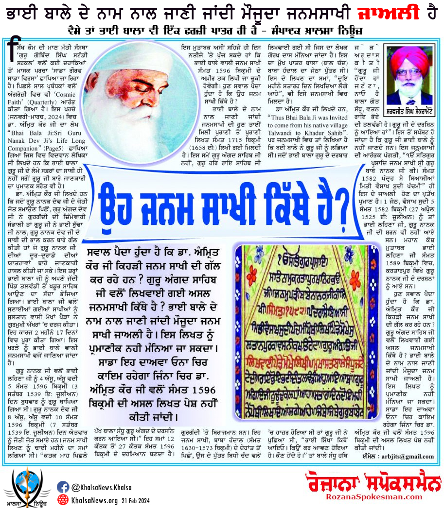 #KhalsaNews #Bala #Fake #janamsakhi #SarbjitSingh #sacramento