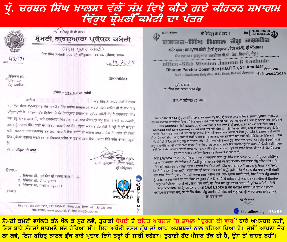 #KhalsaNews #ProfDarshanSingh #SGGS #SGPC #Jammu #DG #Chaupayi #Ardas #DurgaKeeVaar