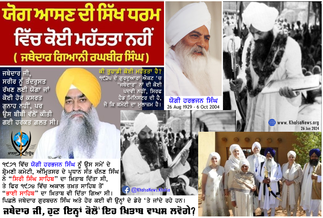 #KhalsaNews #Jathedar #RaghbirSingh #AkalTakhat #yoga #yogiharbhajansingh #GurbachanSingh