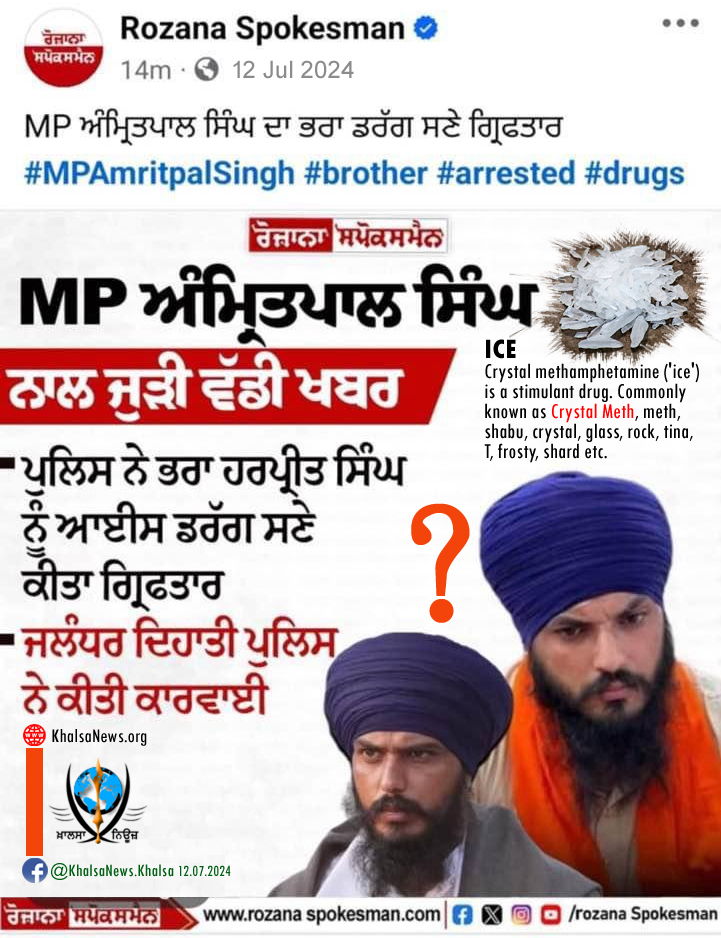 #KhalsaNews #AmritpalSingh #HapreetSingh #ice #Drug #arrested