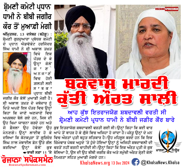 #KhalsaNews #BibiJagirKaur #Dhami #SGPC