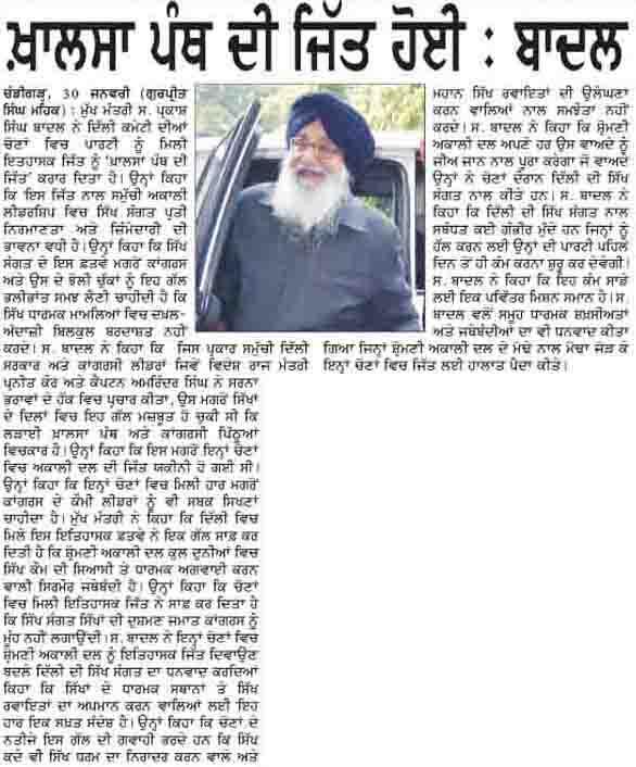 ਦਿੱਲੀ ਚੋਣਾਂ ਨਾ ਸਰਨਾ ਹਾਰਿਆ ਤੇ ਨਾਂ ਬਾਦਲ ਜਿੱਤਿਆ। ਇਹ ਚੋਣਾਂ ਭਗਵਾਂ