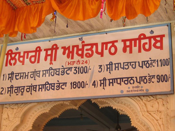 ਇਹ ਸਾਧਾਰਨ ਪਾਠ ਇੰਨੇ ਦਾ, ਇਹ ਮਹਾਂ ਸੰਪਟ ਇੰਨੇ ਦਾ, ਇਹ ਸਣ ਕੇਸੀਂ ਇਸ਼ਨਾਨ ਵਾਲਾ ਇੰਨੇ