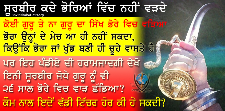 ਪਰ ਇਹ ਪੰਡੀਏ ਦੀ ਹਰਾਮਜਾਦਗੀ ਦੇਖੋ ਇਨੀ ਸੂਰਬੀਰ ਜੋਧੇ ਗੁਰੂ ਨੂੰ ਵੀ 26 ਸਾਲ ਭੋਰੇ