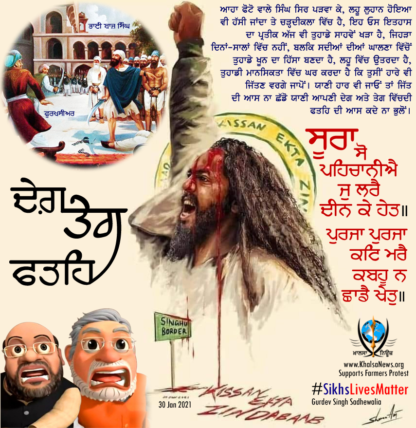 ਵਾਲੇ ਬੰਦਾ ਸਿਰ ਪੜਵਾ ਕੇ, ਲਹੂ ਲੁਹਾਨ ਹੋਇਆ ਵੀ ਹਸੀ ਜਾਂਦਾ ਤੇ ਚੜਦੀ ਕਲਾ