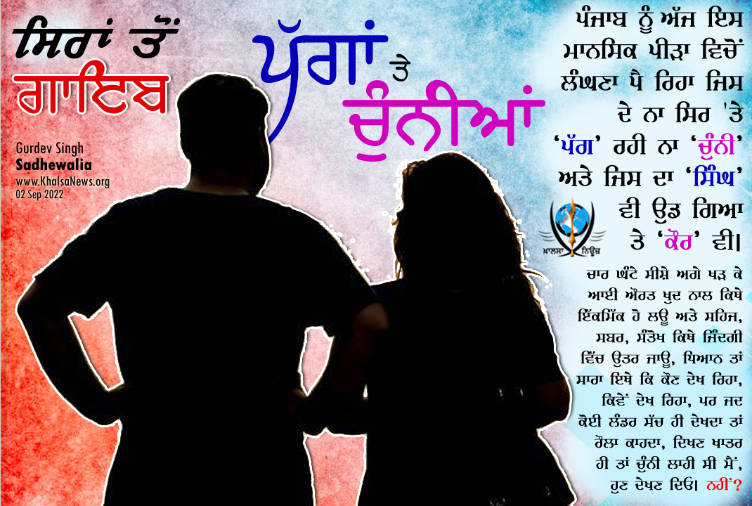 ਦੇ ਨਾ ਸਿਰ 'ਤੇ "ਪੱਗ" ਰਹੀ ਨਾ "ਚੁੰਨੀ" ਅਤੇ ਜਿਸ ਦਾ "ਸਿੰਘ" ਵੀ ਉਡ ਗਿਆ "ਕੌਰ" ਵੀ।