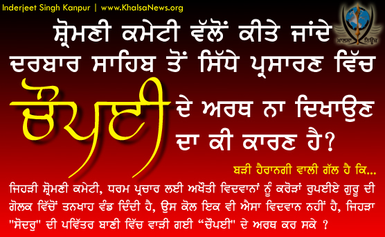 ਸ਼੍ਰੋਮਣੀ ਕਮੇਟੀ ਨੇ ਲਾਈਵ ਟੈਲੀਕਾਸਟ ਵਿੱਚ ਗੁਰਬਾਣੀ ਦੇ ਅਰਥ ਲਿਖਣੇ ਸ਼ੁਰੂ ਕਰਕੇ ਅਪਣੀ ਹਾਲਤ