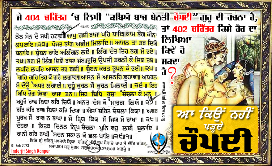 ਚੌਪਈ" ਗੁਰੂ ਦੀ ਰਚਨਾ ਹੈ, ਤਾਂ 402 ਚਰਿਤ੍ਰ ਕਿਸੇ ਹੋਰ ਦਾ ਲਿਖਿਆ ਕਿਵੇਂ ਹੋ ਸਕਦਾ ਹੈ