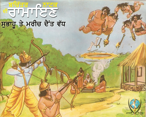 ਨੇ ਦੈਂਤ ਮਰੀਚ ਉੱਤੇ ਇਕ ਬਾਣ ਚਲਾਇਆ, ਜਿਸ ਕਾਰਣ ਮਰੀਚ ਸਮੁੰਦਰ ਵੱਲ ਨੂੰ ਦੌੜਦਾ, ਅਤੇ