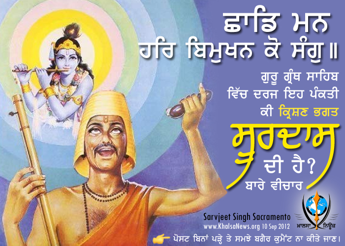 ਭਗਤ ਸੂਰਦਾਸ ਜੀ ਦੀ ਇਕ ਪੰਗਤੀ ਛਾਡਿ ਮਨ ਹਰਿ ਬਿਮੁਖਨ ਕੋ ਸੰਗੁ । ਅਕਸਰ ਵਿਦਵਾਨਾਂ