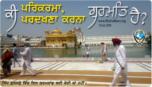 ਦੁਆਲ਼ੇ ਪਰਿਕਰਮਾ / ਪਰਦਖਣਾ ਦਾ ਕਰਮਕਾਂਡ ਗਲਤ ਹੈ। ਦਰਬਾਰ ਸਾਹਿਬ ਮੱਥਾ ਟੇਕਣ ਵਾਸਤੇ