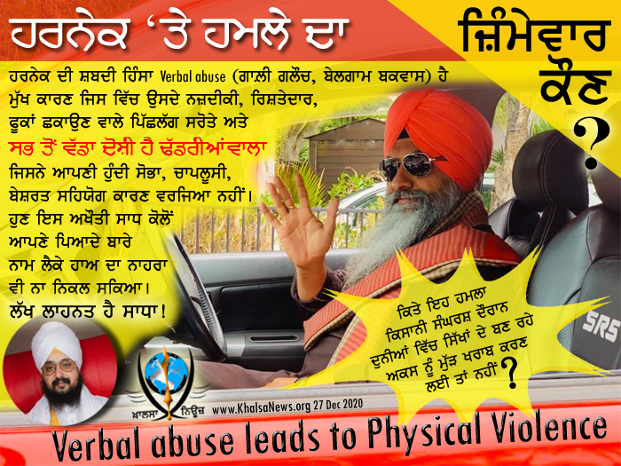ਦੇ ਸਰੋਤੇ ਜਦੋਂ ਉਹੀ ਸ਼ਬਦੀ ਹਿੰਸਾ ਵੈਲੀ ਬਣ ਖੰਜਰ ਦੀ ਹਿੰਸਾ ਬਣਕੇ ਸਾਹਮਣੇ ਟੱਕਰੀ