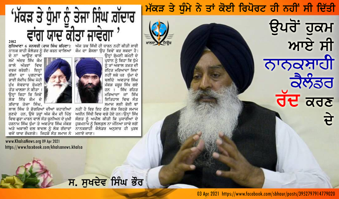 ਰਣਜੀਤ ਸਿੰਘ ਜੀ ਨੇ ਕੈਲੰਡਰ ਦੀਆਂ ਕੁੱਝ ਖਾਮੀਆਂ ਸਾਹਮਣੇ ਲਿਆਂਦੀਆਂ ਜਿਸ ਕਾਰਨ ਜਥੇਦਾਰ