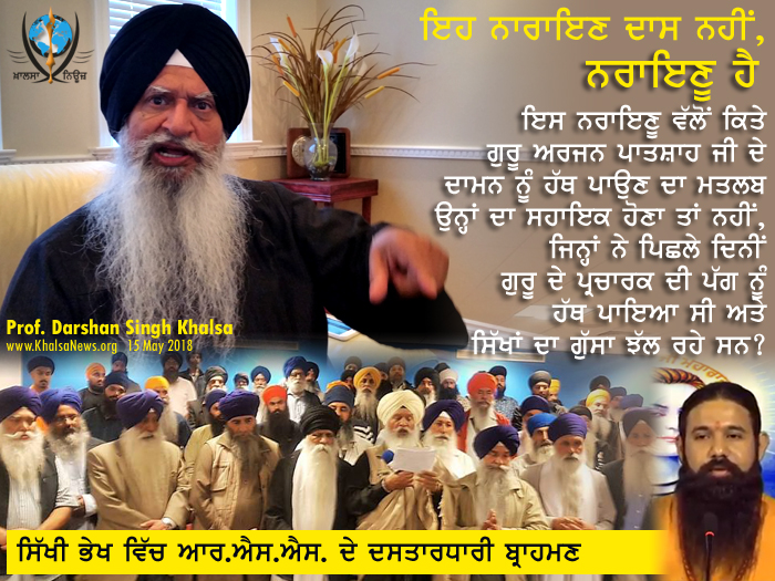 ਇਸ ਨਰਾਇਣੂ ਵੱਲੋਂ ਕਿਤੇ ਗੁਰੂ ਅਰਜਨ ਪਾਤਸ਼ਾਹ ਜੀ ਦੇ ਦਾਮਨ ਨੂੰ ਹੱਥ ਪਾਉਣ ਦਾ ਮਤਲਬ ਉਨ੍ਹਾਂ ਦਾ ਸਹਾਇਕ ਹੋਣਾ ਤਾਂ ਨਹੀਂ, ਜਿਨ੍ਹਾਂ ਨੇ ਪਿਛਲੇ ਦਿਨੀਂ ਗੁਰੂ ਦੇ ਪ੍ਰਚਾਰਕ ਦੀ ਪੱਗ ਨੂੰ ਹੱਥ ਪਾਇਆ ਸੀ ਅਤੇ ਸਿੱਖਾਂ ਦਾ ਗੁੱਸਾ ਝੱਲ ਰਹੇ ਸਨ? ਇਸ ਉਨ੍ਹਾਂ ਦੇ ਸਾਥੀ ਨੇ ਉਨ੍ਹਾਂ ਦੀ ਮਦਦ ਲਈ ਸਾਜਿਸ਼ ਬਣਾਈ ਹੋਵੇ, ਲਉ ਮੈਂ ਉਦੋਂ ਵੱਡਾ ਹਮਲਾ ਗੁਰੂ ਅਦਬ ਨੂੰ ਹੱਥ ਪਾਉਂਦਾ ਹਾਂ, ਇਉਂ ਲੋਕਾਂ ਦਾ ਧਿਆਨ ਤੁਹਾਡੇ ਵੱਲੋਂ ਹੱਟ ਜਾਵੇਗਾ।
