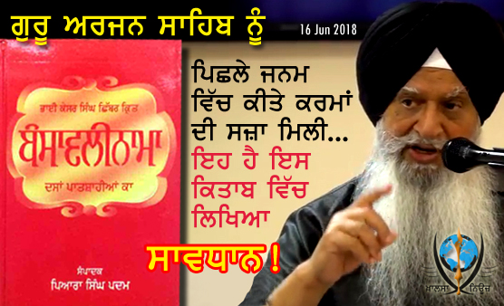 ਗੁਰੂ ਅਰਜਨ ਸਾਹਿਬ ਨੂੰ ਪਿਛਲੇ ਜਨਮ ਵਿੱਚ ਕੀਤੇ ਕਰਮਾਂ ਦੀ ਸਜ਼ਾ ਮਿਲੀ - ਬੰਸਾਵਲੀਨਾਮਾ ਕੇਸਰ ਸਿੰਘ ਛਿੱਬਰ