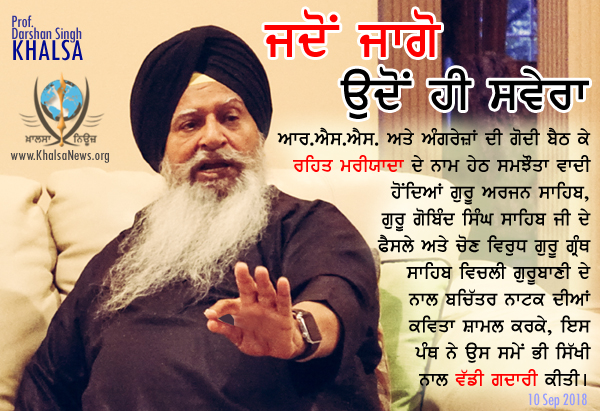 ਆਰ.ਐਸ.ਐਸ. ਅਤੇ ਅੰਗਰੇਜ਼ਾਂ ਦੀ ਗੋਦੀ ਬੈਠ ਕੇ ਰਹਿਤ ਮਰੀਯਾਦਾ ਦੇ ਨਾਮ ਹੇਠ ਸਮਝੌਤਾ ਵਾਦੀ