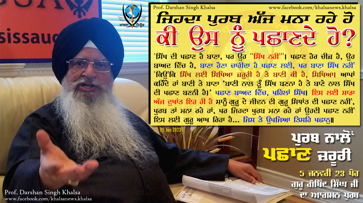 -: ਪ੍ਰੋ. ਦਰਸ਼ਨ ਸਿੰਘ ਖਾਲਸਾ 05 Jan