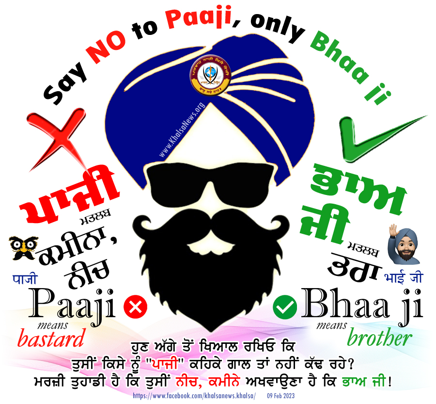 ਖਿਆਲ ਰਖਿਓ ਕਿ ਤੁਸੀਂ ਅੱਗੇ ਤੋਂ ਕਿਸੇ ਨੂੰ "ਪਾਜੀ" ਕਹਿਕੇ ਗਾਲ ਤਾਂ ਨਹੀਂ
