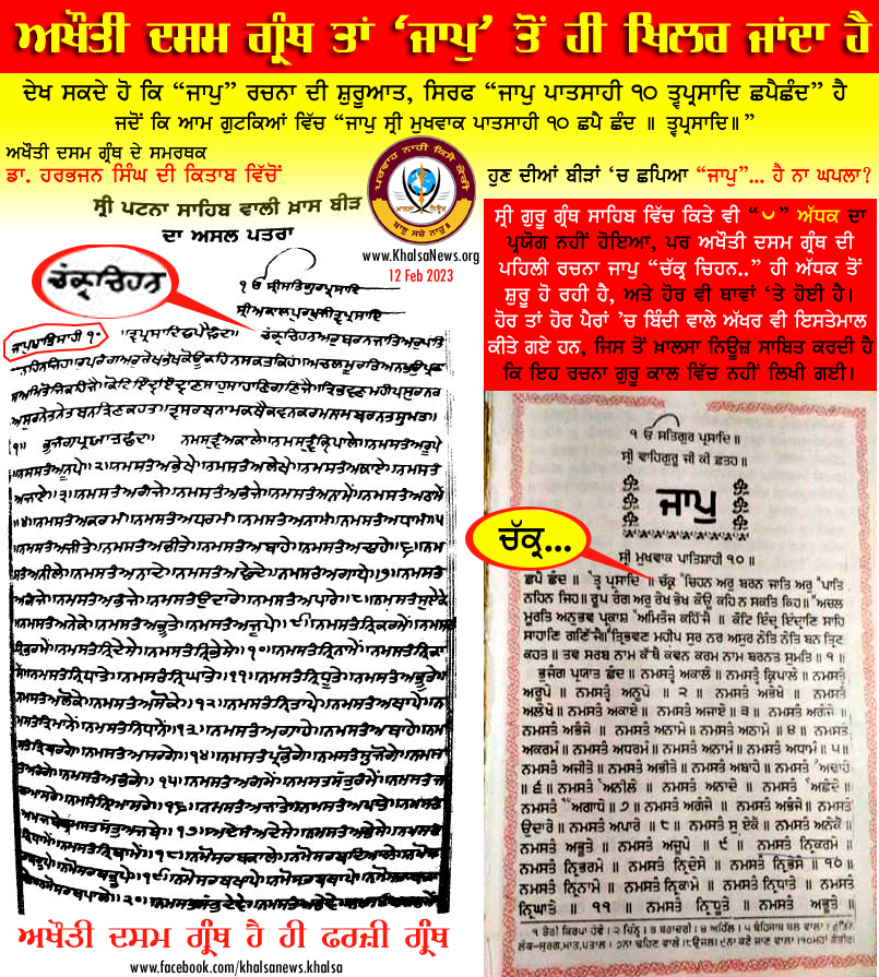 ਜਿਸ ਤੋਂ ਸਾਬਤ ਹੁੰਦਾ ਹੈ ਕਿ ਅਖੌਤੀ ਦਸਮ ਗ੍ਰੰਥ (ਅਸਲ 'ਚ ਬਚਿਤਰ ਨਾਟਕ ਗ੍ਰੰਥ) ਹੈ ਹੀ