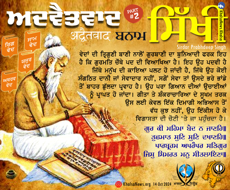 🕉️ ਵੇਦਾਂ ਦੀ ਤ੍ਰਿਗੁਣੀ ਬਾਣੀ ਨਾਲੋਂ ਗੁਰਬਾਣੀ ਦਾ ਬੁਨਿਆਦੀ ਫਰਕ ਇਹ ਹੈ ਕਿ ਗੁਰਮਤਿ
