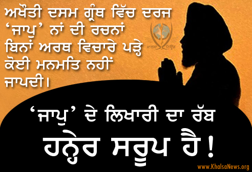 ਦਸ਼ਮ ਗ੍ਰੰਥ ਵਿੱਚ ਦਰਜ ‘ਜਾਪੁ’ ਨਾਂ ਦੀ ਰਚਨਾਂ ਬਿਨਾਂ ਅਰਥ ਵਿਚਾਰੇ ਪੜ੍ਹੇ ਕੋਈ ਮਨਮਤਿ