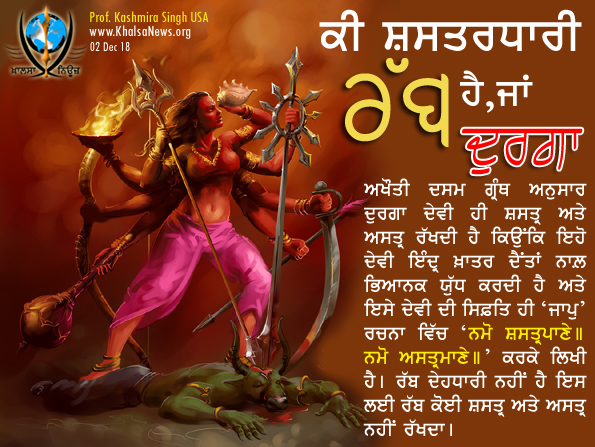 ਅਖੌਤੀ ਦਸਮ ਗ੍ਰੰਥ ਅਨੁਸਾਰ ਦੁਰਗਾ ਦੇਵੀ ਹੀ ਸ਼ਸਤ੍ਰ ਅਤੇ