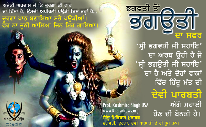 ਵਿੱਚ ਸ਼ਾਮਲ ਕੀਤੀ ‘ਪ੍ਰਿਥਮ ਭਗਉਤੀ ਸਿਮਰ ਕੈ’ ਵਾਲ਼ੀ ਪਉੜੀ ਰਾਹੀਂ ਦੁਰਗਾ ਮਾਈ ਪਾਰਬਤੀ