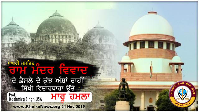 ਜੋ ਮਾਨਯੋਗ ਸੁਪਰੀਮ ਕੋਰਟ ਵਲੋਂ ਰਾਮ ਮੰਦਰ ਵਿਵਾਦ ਦਾ ਫ਼ੈਸਲਾ ਸੁਣਾਉਂਦਿਆਂ ਕੀਤਾ