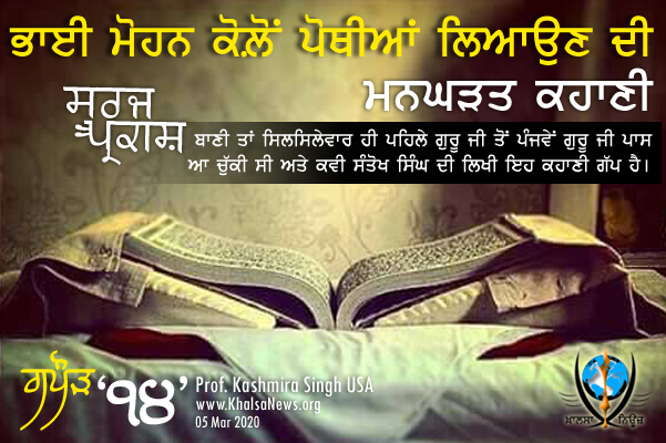 ਭਾਈ ਮੋਹਨ ਕੋਲ਼ੋਂ ਪੋਥੀਆਂ ਲਿਆਉਣ ਦੀ ਮਨਘੜਤ ਕਹਾਣੀ