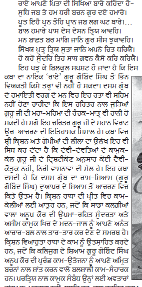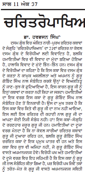 11-17) `ਤੇ ਆਪ ਜੀ ਦਾ ਲੇਖ, `ਚਰਿਤਰੋਪਾਖਿਆਨ ਦੀ