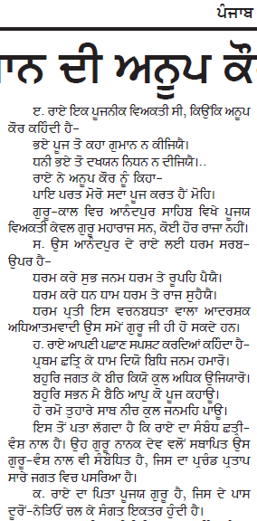 ਅਨੂਪ ਕੌਰ ਵਾਲੀ ਸਾਖੀ ਨੂੰ ਸਪੱਸ਼ਟ ਸ਼ਬਦਾ ਵਿਚ ਰੱਦ ਕਰਦਾ ਹਾਂ। ਇਸ