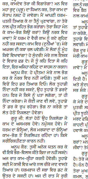 ਸਰੀਰਕ ਸੰਬੰਧ ਕਾਇਮ ਕਰਨ ਲਈ ਜੋਰ ਪਾਉਣਾ, ਗੁਰੂ ਜੀ ਵਲੋ ਇਨਕਰਾ ਕਰਨ ਤੇ ਔਰਤ