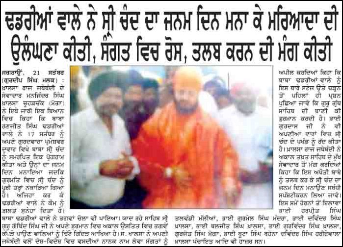 ਕਰਨ ਜਾ ਰਹੇ ਸੀ, ਕਿ ਢਡਰੀਆਂ ਵਾਲੇ ਸਾਧ ਨੇ ਸ਼੍ਰੀ ਚੰਦ ਦਾ ਜਨਮ