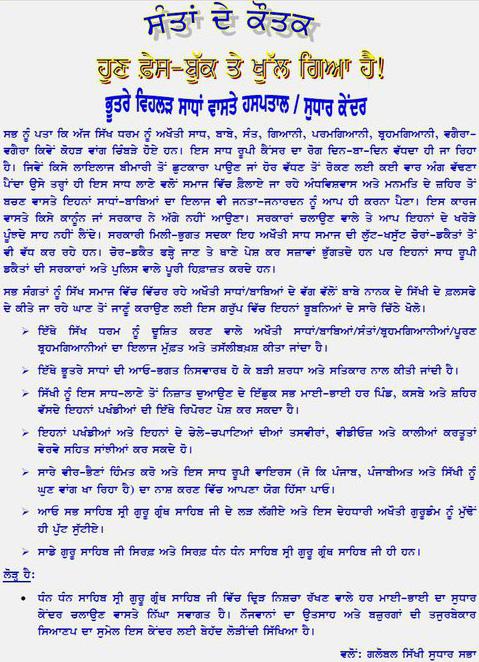 ਭੂਤਰੇ ਵਿਹਲੜ ਸਾਧਾਂ ਵਾਸਤੇ ਹਸਪਤਾਲ / ਸੁਧਾਰ ਕੇਂਦਰ: ਗਲੋਬਲ ਸਿੱਖੀ ਸੁਧਾਰ ਸਭਾ