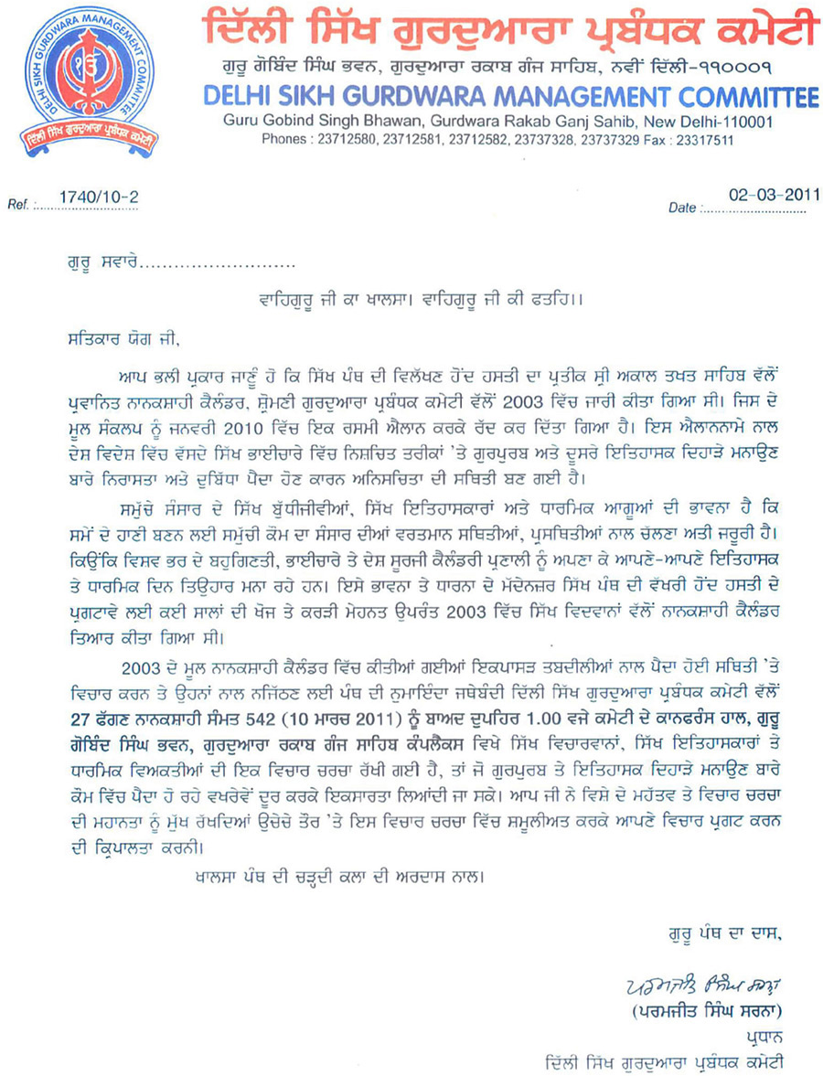 ਨਾਨਕਸ਼ਾਹੀ ਕੈਲੰਡਰ ਵਿੱਚ ਕੀਤੀਆਂ ਇੱਕਪਾਸੜ ਤਬਦੀਲੀਆਂ ਵਿਰੁੱਧ ਨਜਿੱਠਣ ਲਈ ਦਿੱਲੀ ਗੁਰਦੁਆਰਾ ਕਮੇਟੀ ਵਲੋਂ 10 ਮਾਰਚ 2011 ਨੂੰ ਵਿਸ਼ੇਸ਼ ਇੱਕਤਰਤਾ