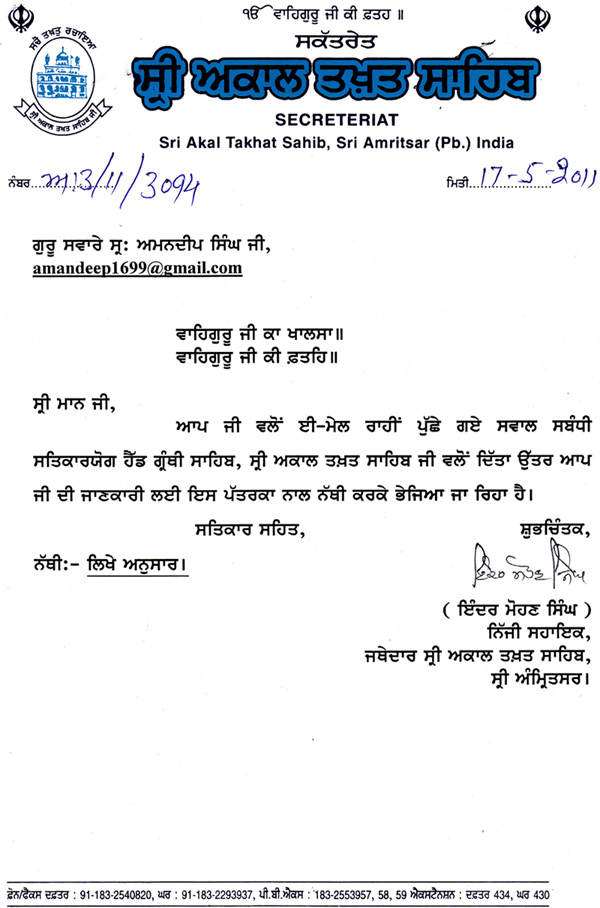 "ਸਿੰਘ ਸਾਹਿਬ" ਆਦਿ ਕਹਿ