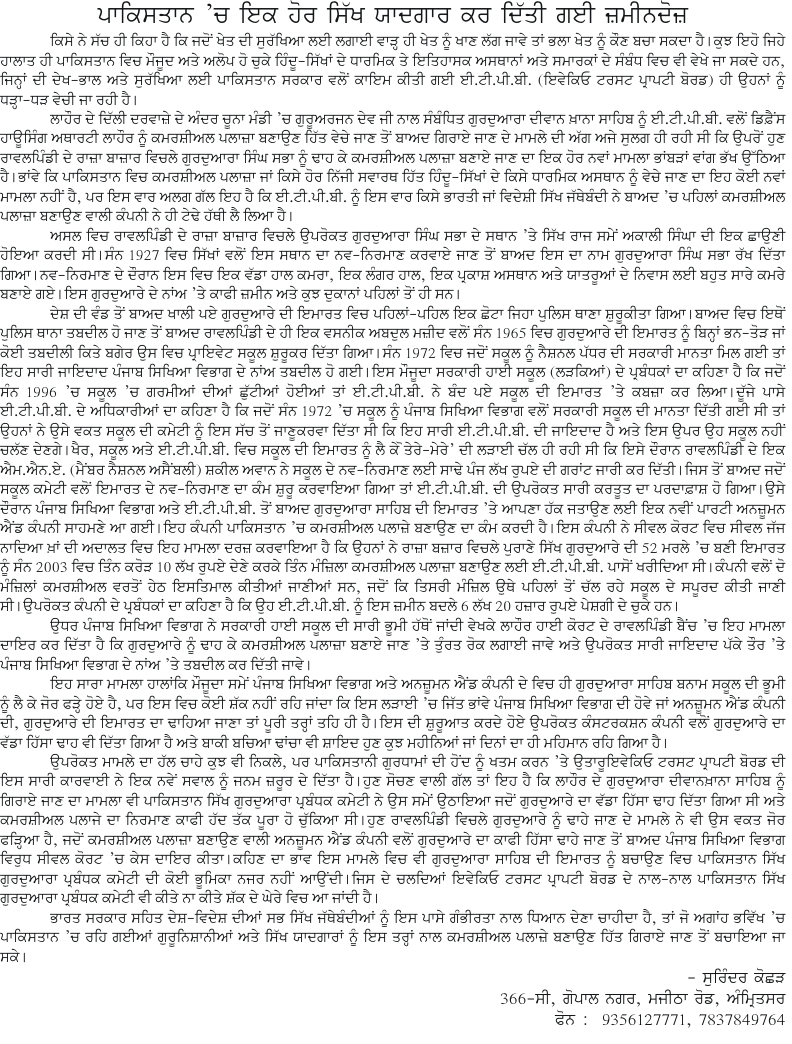 Disclaimer: Khalsanews.org does not necessarily endorse the views and opinions voiced in the news / articles / audios / videos or any other contents published on www.khalsanews.org and cannot be held responsible for their views. Read full details.... |
