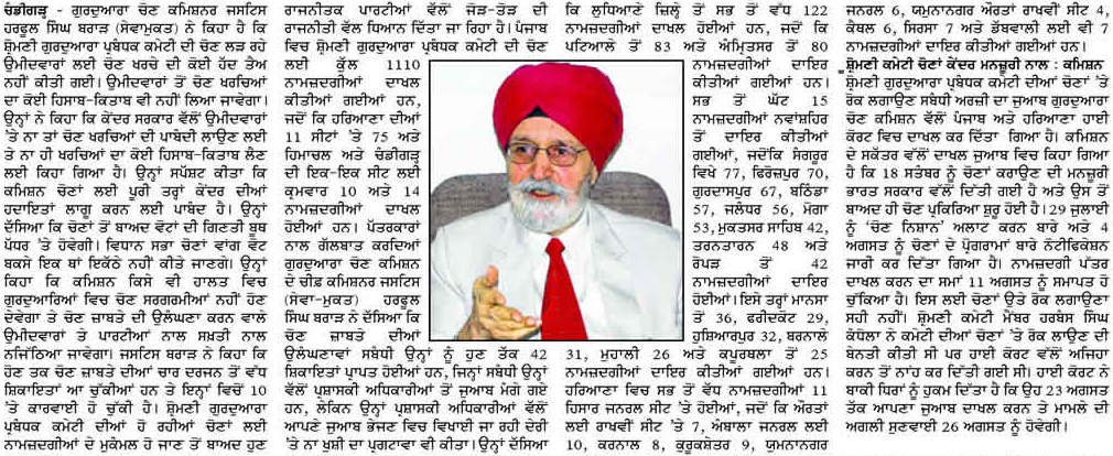 ਸ਼੍ਰੋਮਣੀ ਕਮੇਟੀ ਚੋਣਾਂ ਦੌਰਾਨ ਉਮੀਦਵਾਰਾਂ ਨੂੰ ਮਰਜੀ ਦਾ ਪੈਸਾ ਖਰਚਣ ਦੀ ਖੁੱਲ੍ਹ, ਨਹੀਂ ਦੇਣਾ ਪਵੇਗਾ ਹਿਸਾਬ: ਗੁਰਦੁਆਰਾ ਚੋਣ ਕਮਿਸ਼ਨਰ