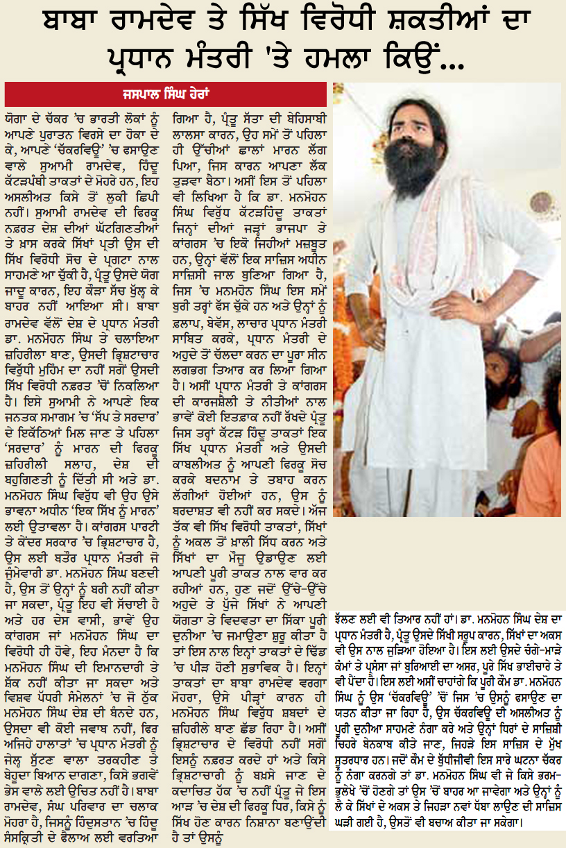ਜੇ "ਸੱਪ ਤੇ ਸਰਦਾਰ" ਇੱਕਠਿਆਂ ਮਿਲ ਜਾਣ, ਤਾਂ ਪਹਿਲਾਂ ਸਰਦਾਰ ਨੂੰ ਮਾਰੋ: ਬਾਬਾ ਰਾਮਦੇਵ