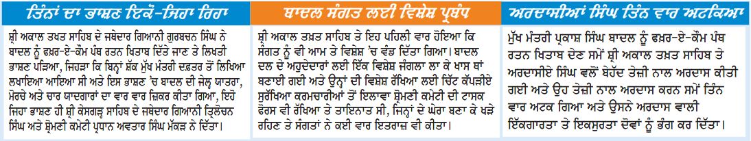 ਨੇ ਬਾਦਲ ਸਾਹਿਬ ਦੀ ਮਦਦ ਕਰਦਿਆਂ ਇਹ ਸਿਰੋਪਾ ਬਾਦਲ ਸਾਹਿਬ ਦੇ ਗਲ੍ਹ ਵਿਚ ਪਾ ਦਿੱਤਾ। ਇਸ ਤੋਂ