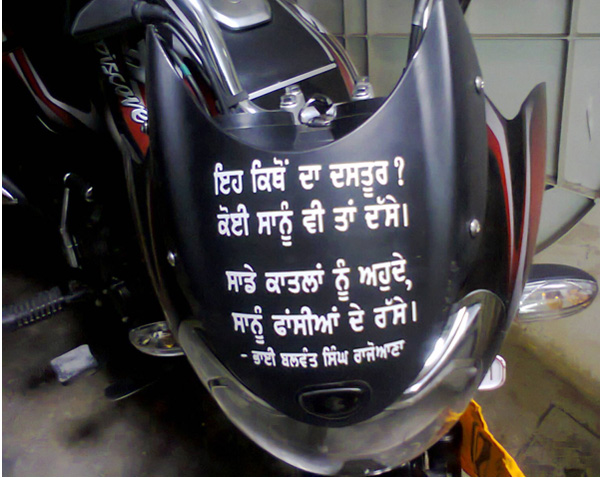 ਨੇ ਆਪੋ ਆਪਣੇ ਵਾਹਨਾਂ ਤੇ ਭਾਈ ਰਾਜੋਆਣੇ ਨਾਲ ਸਬੰਧਿਤ ਕਈ ਤਰ੍ਹਾਂ ਦੇ ਨਾਅਰੇ ਅਤੇ ਕਵਿਤਾਵਾਂ