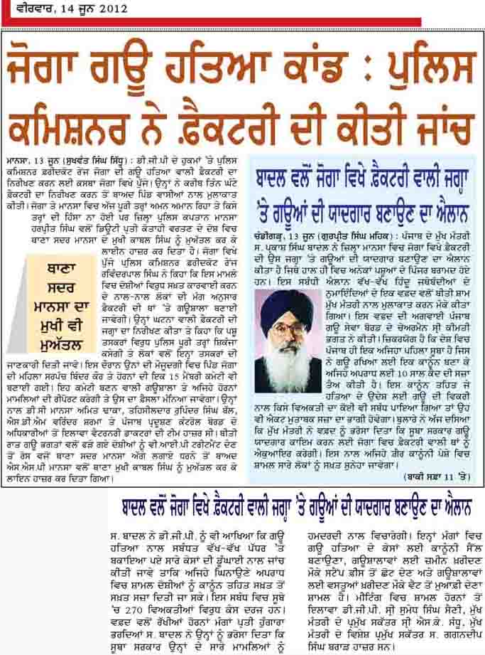 ਲਈ, ਬਿਨਾ ਸੋਚੇ, ਮਾਨਸਾ ਏਰੀਏ ਵਿਚ ਮਾਰੀਆਂ ਗਈਆਂ ਗਊਆਂ ਦੀ ਯਾਦਗਾਰ ਬਨਾਉਣ ਦਾ ਤੱਤ ਫੱਟ