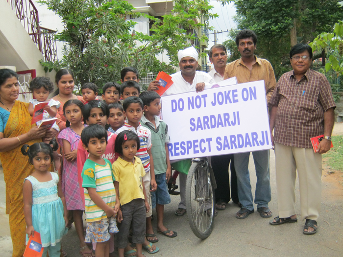 ਜਿਸ 'ਤੇ ਅੰਗਰੇਜੀ ਤੇ ਕੰਨੜ ਭਾਸ਼ਾ ਵਿੱਚ ਲਿਖਿਆ ਹੁੰਦਾ ਹੈ:- 'ਸਰਦਾਰਾਂ ਦਾ ਮਜ਼ਾਕ ਨਾ ਉਡਾਓ,