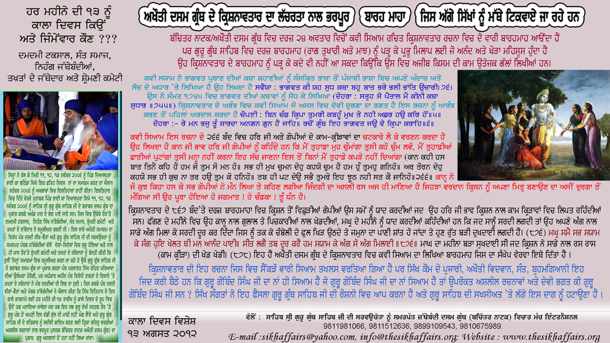 ਛੱਪਣ ਵਾਲਾ ਅਖੌਤੀ ਦਸਮ ਗ੍ਰੰਥ ਦਾ ਪਾਜ਼ ਉਘੇੜਦਾ ਇਸ਼ਤਿਹਾਰ ਸੰਗਤਾਂ ਵਿਚ ਵੰਡਿਆ ਗਿਆ। ਇਸ ਵੇਲੇ