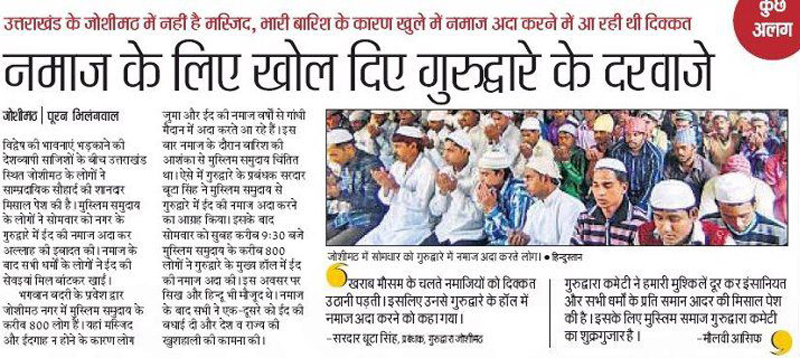 local gurdwara sent a heart warming message to them- The Muslims could use