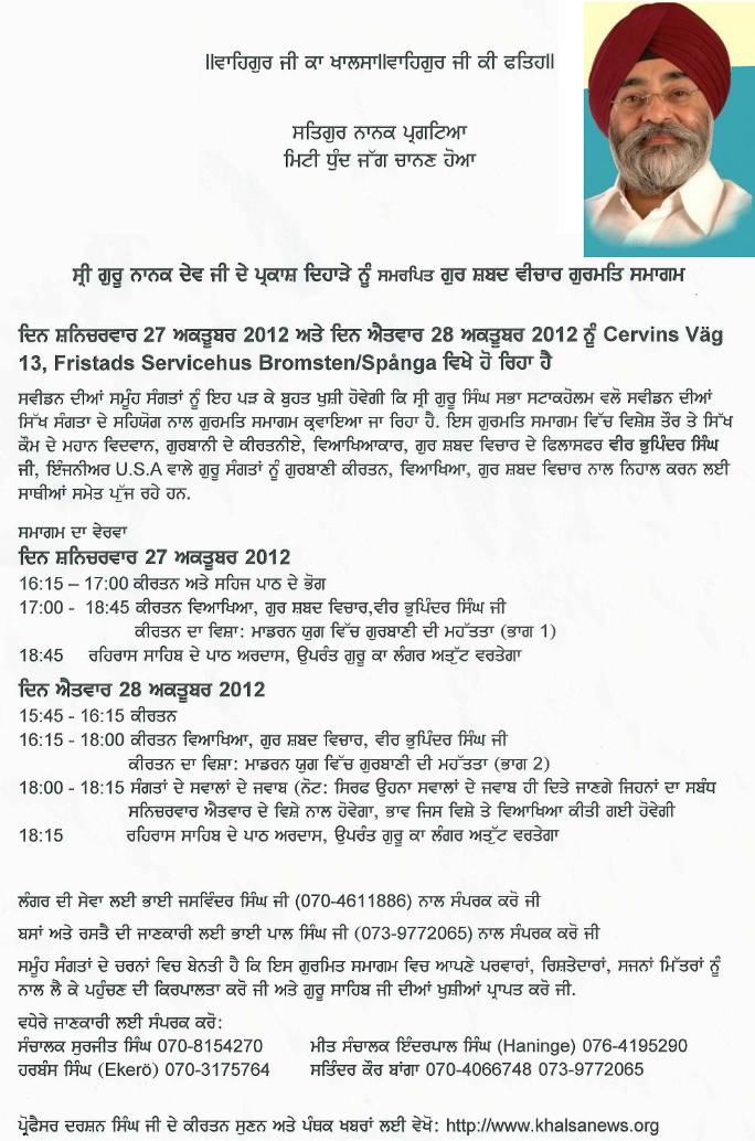 ਵੀਰ ਭੁਪਿੰਦਰ ਸਿੰਘ, 27-28 ਅਕਤੂਬਰ 2012 ਨੂੰ ਸਵੀਡਨ ਵਿਖੇ