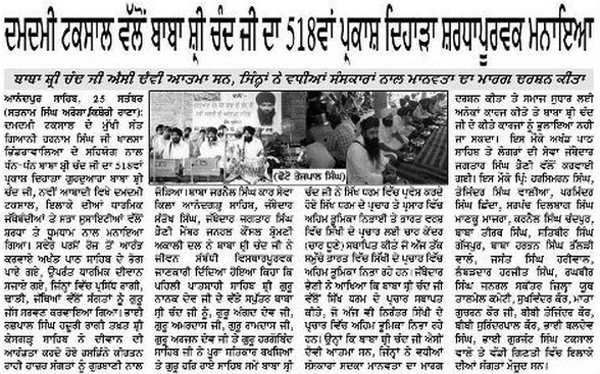 ਬੇਸ਼ਰਮੀ ਦੀ ਹੱਦ - ਡਮ ਡਮੀ ਟਕਸਾਲ ਵਲੋਂ ਗੁਰੂ ਤੋਂ ਆਕੀ, ਦਿਲ ਖੋਟੇ ਸ੍ਰੀ ਚੰਦ ਦਾ 518ਵਾਂ ਜਨਮ ਦਿਹਾੜਾ ਮਨਾਇਆ