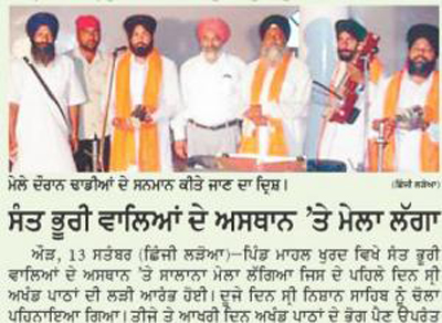 ਸਮਾਧ ਤੇ ਸਾਰੇ ਹੀ ਮਸ਼ਹੂਰ ਢਾਡੀ ਜਾਂਦੇ ਹਨ, ਸ਼੍ਰੋਮਣੀ