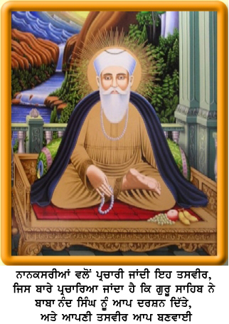 ਤਸਵੀਰ ਨੂੰ ਗੁਰੂ ਨਾਨਕ ਪਾਤਸ਼ਾਹ ਜੀ ਦੀ ਅਸਲੀ ਤਸਵੀਰ ਹੋਣ ਦਾ ਦਾਵਾ ਕਰਦੇ ਗੁਰੂ ਗਰੰਥ